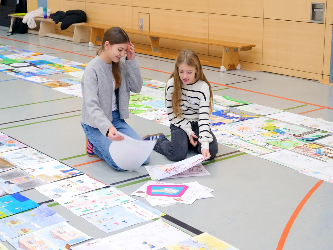 Die Sporthalle der IGS Pellenz in Plaidt sieht heute ganz anders aus als sonst. Keine tobenden Schüler, keine Sportgeräte – stattdessen ein Meer aus Farben, Ideen und Botschaften: 3786 Bilder liegen in Fünferreihen auf dem Hallenboden, jedes einzelne gestaltet von Sechstklässlerinnen und Sechstklässlern von 98 Schulen aus Rheinland-Pfalz. Sie alle nehmen teil am traditionsreichen Mal- und Zeichenwettbewerb „Einfälle gegen Unfälle“, den die Unfallkasse Rheinland-Pfalz (UK RLP) seit 1982 gemeinsam mit dem Bildungsministerium veranstaltet. Und die Resonanz ist ungebrochen.